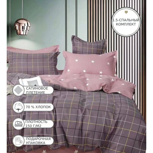 Комплект постельного белья повышенной плотности, 1.5-спальный, пододеяльник на молнии