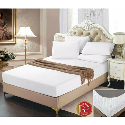 Простынь на резинке/Круговая/Страйп на резинке цвет (Белый) (180x200)