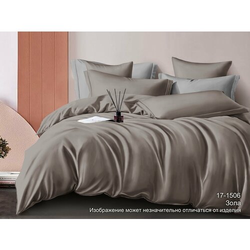 Постельное белье Asabella 100% тенсель люкс 2137-6 евро, cерый/фисташковый