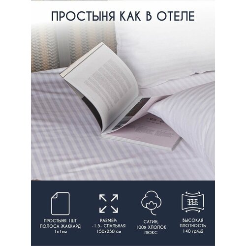 Простыня HORECA полутороспальная 150*250 (Страйп 1:1) сатин люкс хлопок 100% / для отеля, гостиницы, дома