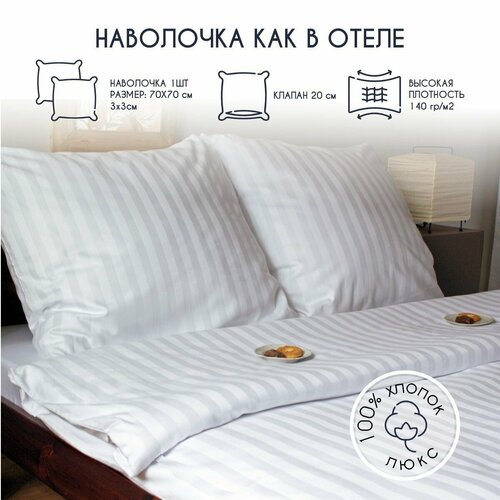 Наволочка HORECA на подушку 70х70 см (Страйп 3:3 полоса поперёк) 1 шт без ушек сатин хлопок 100%, белые, полосатые, отеля, гостиницы, дома