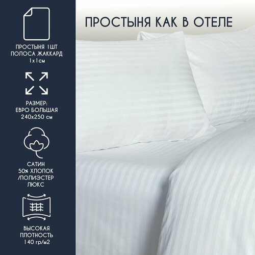 Простыня HORECA евро макси 270*270 (Страйп 1:1) сатин люкс /хлопок 50%, 50% ПЭ / отельная/, для отеля, гостиницы, дома