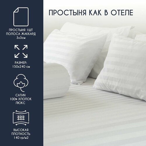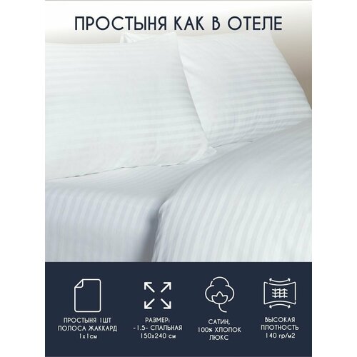 Простыня HORECA полутороспальная 150*240 (Страйп 3:3 полоса вдоль) сатин люкс хлопок 100% / отельная/отеля, гостиницы, дачи, дома