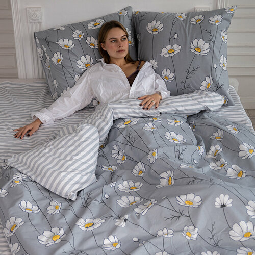 Постельное белье евростандарт двуспальное/евро Сатин Mency Жатка/ пододеяльник 200x220/простыня 220x240/ Наволочки 50x70-2шт 70x70-2шт