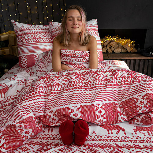 Постельное белье евро BRAVO поплин New Year, хлопок, наволочки 70*70 - 2 шт /евро размер/ Новый год 2024/ Рождество