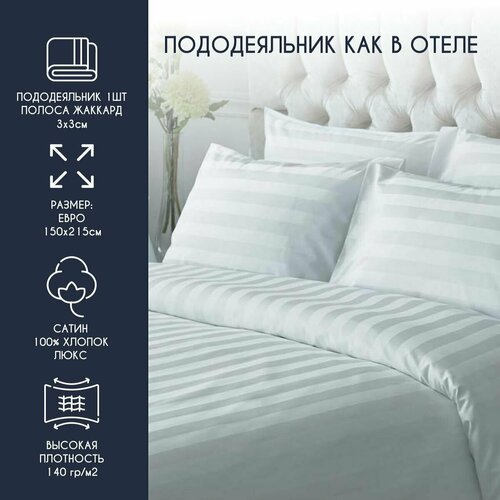 Пододеяльник HORECA полутороспальный 150*215 (Страйп 3:3 полоса вдоль длины) сатин люкс / хлопок 100%/ HORECA / отельный /отеля, гостиницы