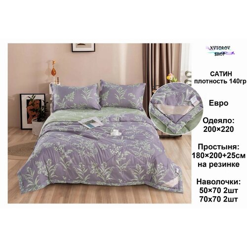 евростандартТкань: шёлк, сатин , комплект постельного белья евро в подарочной коробке и сумка. Пододеяльник 200\*220 1шт; Простыня 230\*250 1шт; Наволочки 50\*70 2шт; Наволочки 70\*70 2шт. Качественная, приятная к телу, стильная постель.