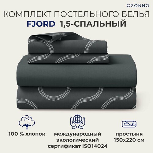 Комплект постельного белья SONNO FJORD 1,5-спальный цвет Фьорд, Антрацит