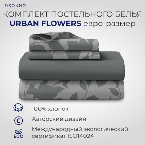 Комплект постельного белья SONNO URBAN FLOWERS евро-размер Цветы, Матовый Графит