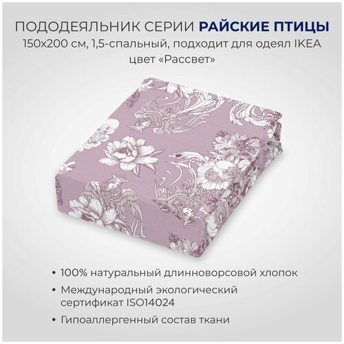 Пододеяльник SONNO райские птицы 1,5-спальный, 150х200 см, подходит для одеял IKEA, цвет Птицы рассвет
