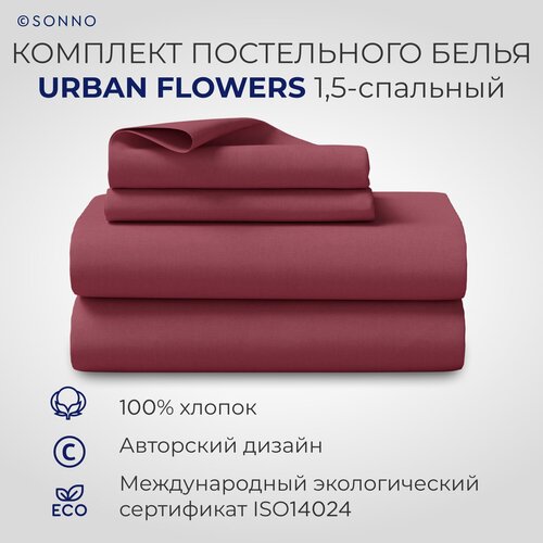 Комплект постельного белья SONNO URBAN FLOWERS 1,5-спальный цвет Тёмный Гранат