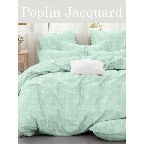 Постельное белье 1.5 спальное Cleo Poplin Jacquard однотонное, зеленое, хлопок, вискоза, макопоплин