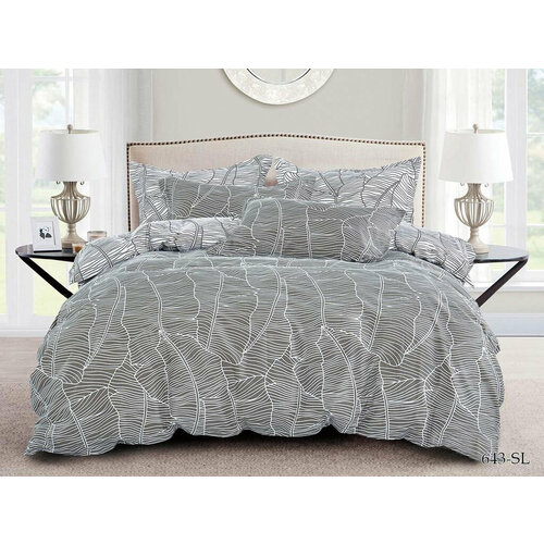 Комплект поплинового постельного белья 239-PC Cleo (серый-зеленый), 1,5 спальный (наволочки 70x70)