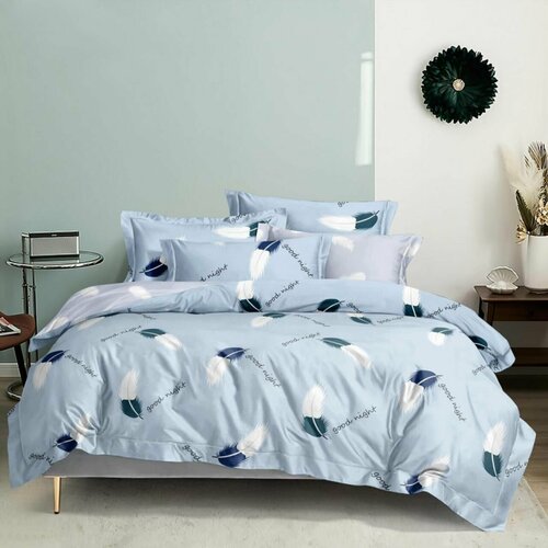 В комплект входят пододеяльник размером 200х220 см на молнии, простыня размером 220х240 см, а также 4 наволочки размером 50х70 см и 70х70 см с клапаном.