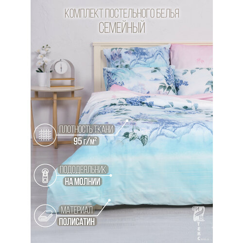 Стиль. Это семейный комплект, состоящий из пододеяльников размером 150х215 см, простыни 220х240 см и четырех наволочек размером 50х70 см и 70х70 см.