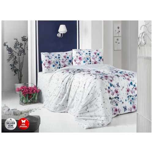 Комплект постельного белья Altinbasak Bloom, евростандарт, хлопок, белый/розовый