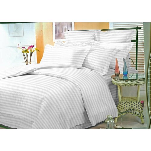 Постельное белье с простыней на резинке из страйп-сатина Полоска 3х3 Elin (белый), 2,0 спальный (наволочки 70x70)