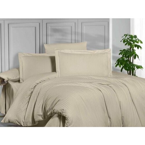Постельное белье из страйп сатина KARVEN N162-SS-012 SAMPANYA бежевое 50х70 (1шт), 70х70 (1шт) 1,5-спальное