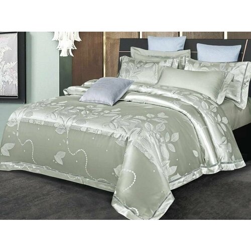 Постельное белье Asabella 100% тенсель люкс 2137-6 евро, cерый/фисташковый