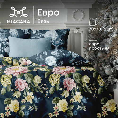 Постельное белье Евро Mia Cara, Бязь, нав. 70х70, Цветочный вернисаж