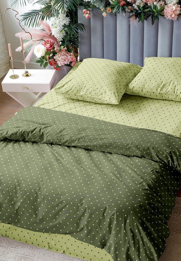 Постельное белье семейное с 2 пододеяльниками 160x220 Simple Living Hawaii комплект сатин, 2 наволочки 50х70, Зеленый