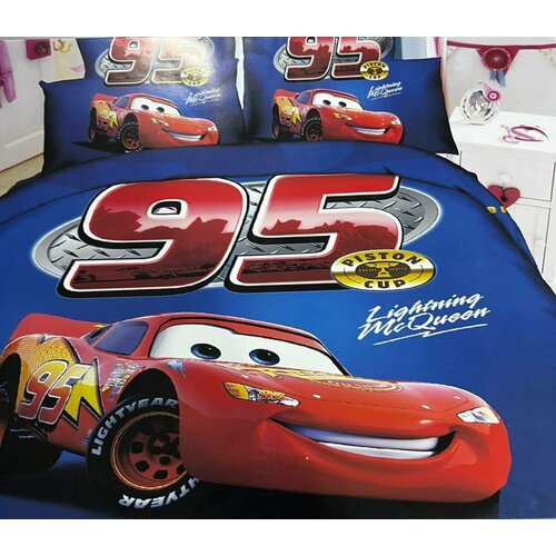 Детский комплект постельного белья 1.5-спальное Машина / Полуторный/ простыня 150x215 / пододеяльник 150x215 / Наволочки 50x70