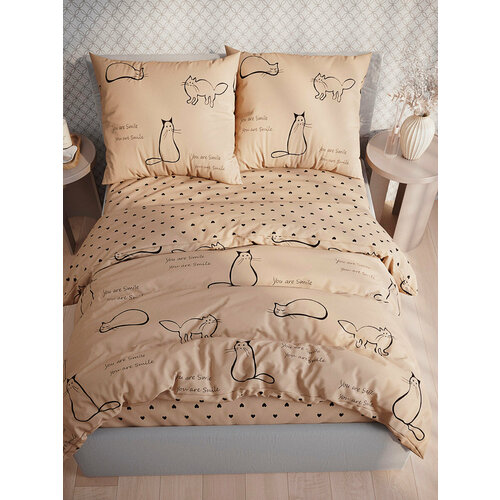 Пододеяльник Кот Коттон "Котики (беж)" 1,5-сп 145х215 см