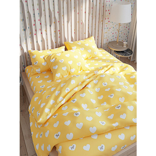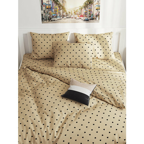 Постельное белье Кот Коттон "Жизель" евро наволочки 50х70 2шт Простынь на резинке 180х200 см Пододеяльник 200х215 см