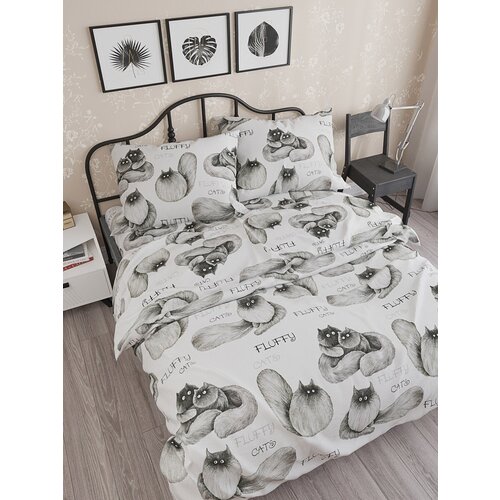 Постельное белье Кот Коттон "Локи" 2-спальный наволочки 50х70 2шт Простынь 240х215 см Пододеяльник 175х215 см, размер 2, спальный