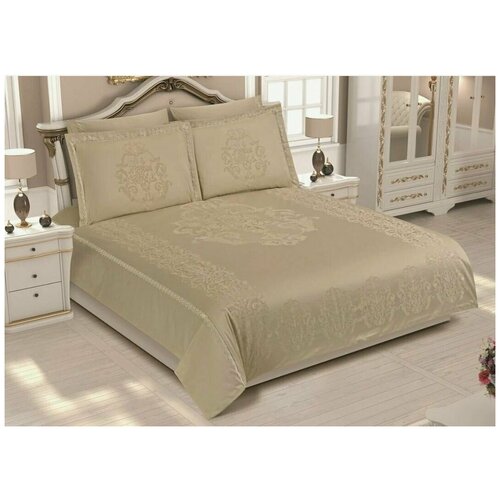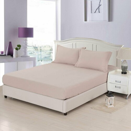 Простынь на резинке с двумя наволочками "FITTED DUZ" однотонная бежевая