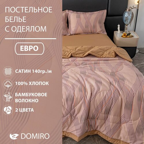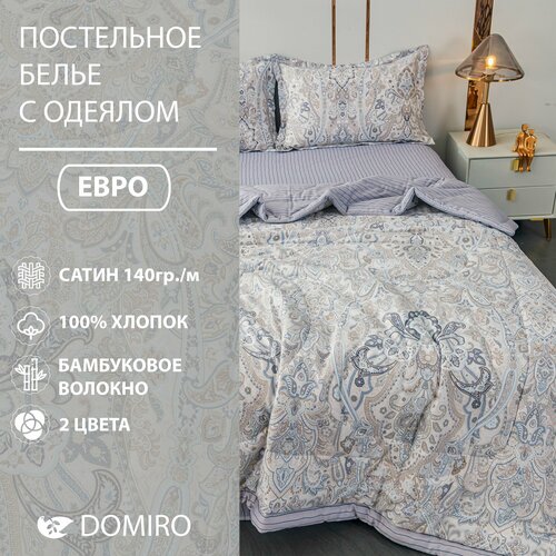 Постельное белье DOMIRO сатин 100% хлопок, комплект Евро, одеяло покрывало бамбуковое волокно, 2 наволочки 50х70 см