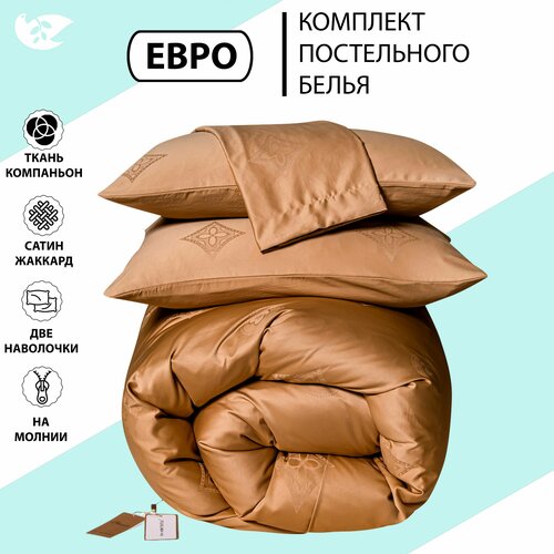 Цены на Постельное белье однотонное сатин жаккард хлопок, комплект 1,5 спальный на молнии, наволочки 50х70 коричневый, светлый, размер 1.5, спальный в г. Москва