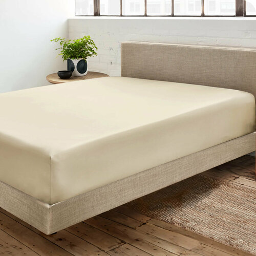 Простыня на резинке из сатина-люкс RMS-049 Elin (шампань), Простыня на резинке 90x200 (+30 см бортик)