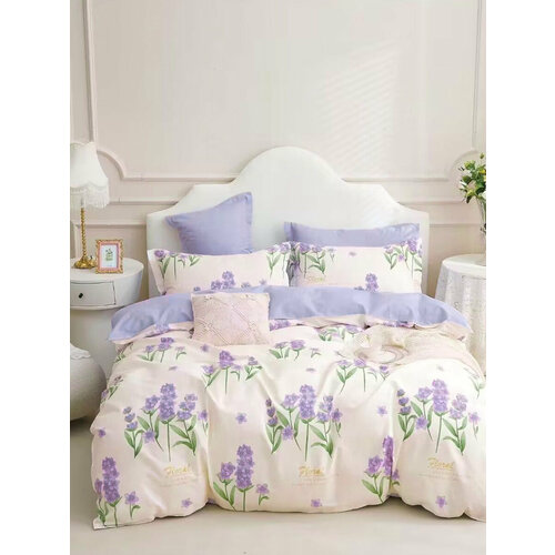 Поплиновое постельное белье PL-095 Elin (кремовый-сиреневый), Евро (наволочки 70x70)
