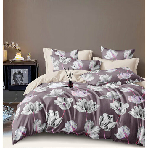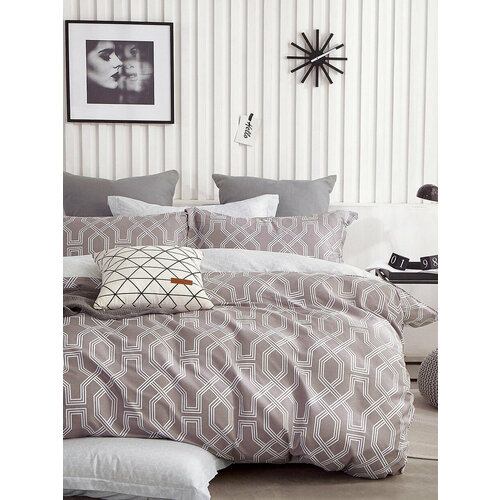 Постельное белье из сатина PS-397 Elin (серый-бежевый), 2,0 спальный (наволочки 70x70)