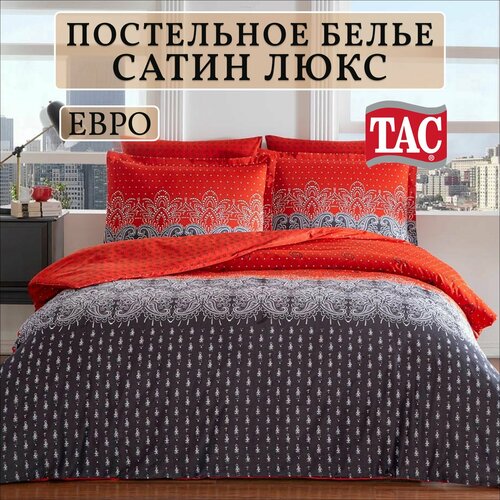 Постельное белье TAC "Hamlet" евро комплект, люкс-сатин, красно-коричневый, орнамент, Турция