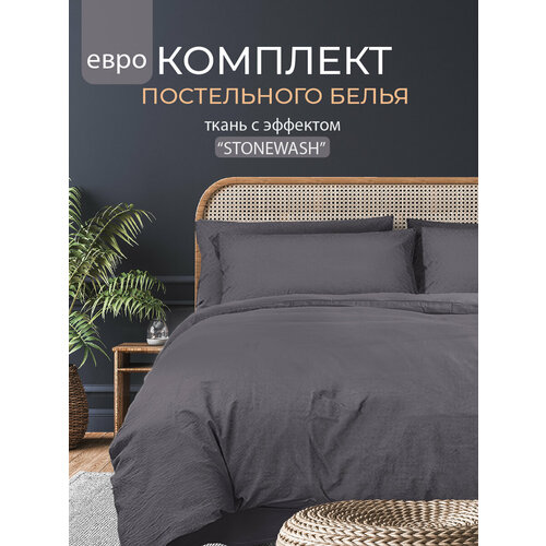 Постельное белье The Дом Евростандарт, Полисатин, Вареный, Графит