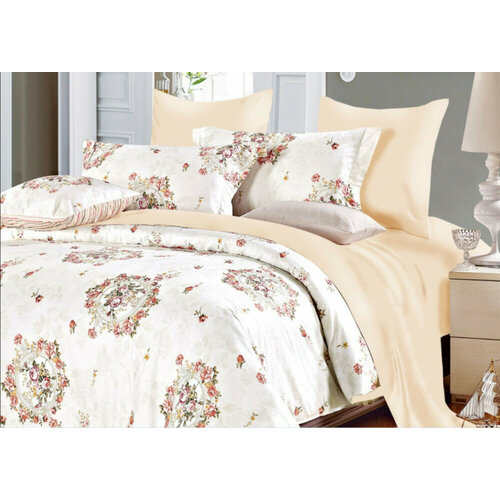 розовый, зеленый, бежевыйПостельное белье Евро Вальтери Размер пододеяльника, см: 200×220; Размер простыни, см: 220×240; Размер наволочки, см: 70×70-2 шт; Материал: Сатин; Состав: 100% хлопок; Бренд: Вальтери