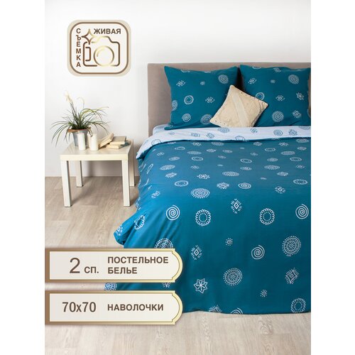 Постельное белье 1.5 спальное "Лидер Дом", поплин, 70х70, хлопок 100%, синее