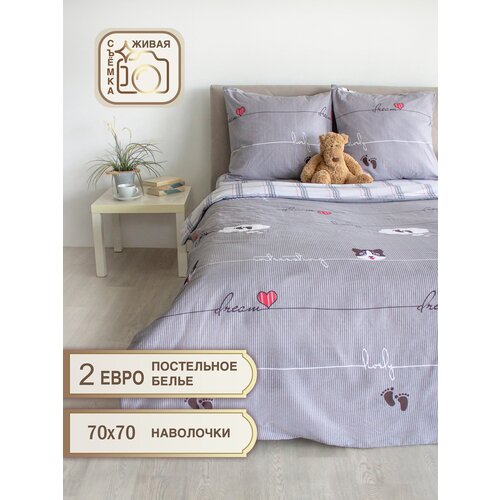 Постельное белье VV Viola 2 спальное с евро простыней поплин 100% хлопок/ питомцы