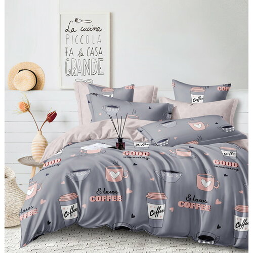 Комплект постельного белья Поплин Элис Текстиль "Кофемания" 2-спальный, простынь на резинке 160*200, высота матраса 20 см, хлопок