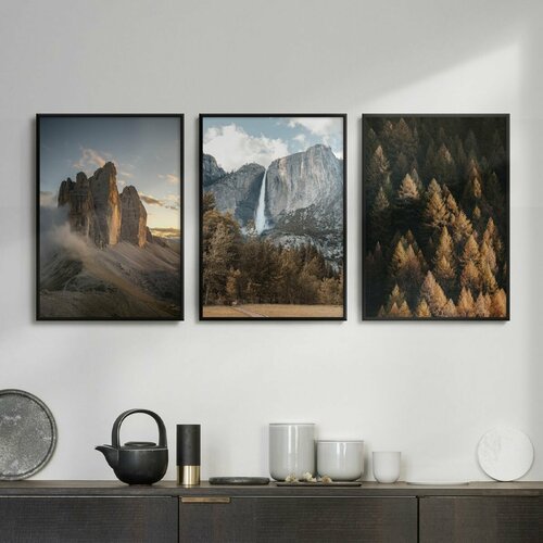 Постер 3 шт 30х40 без рамки "Горный водопад" набор картин для интерьера