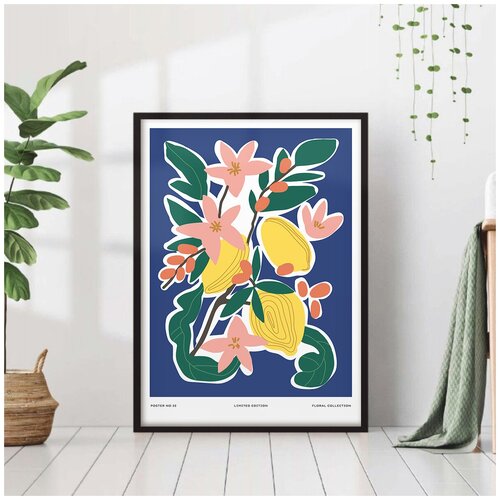 Постер "Лимоны на ветке" 50 на 70 в черной рамке / Картина для интерьера / Плакат / Постер на стену / Интерьерные картины