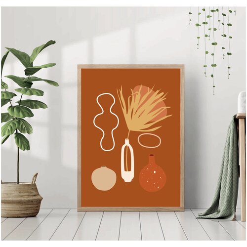 Постер без рамки "Стилизованные фигуры, сосуды, растения. Минимализм. Стиль бохо" 50*70 в тубусе / Картина для интерьера / Плакат