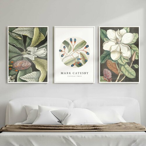 Постер 3 шт 30х40 без рамки "Тропические цветы" набор картин для интерьера