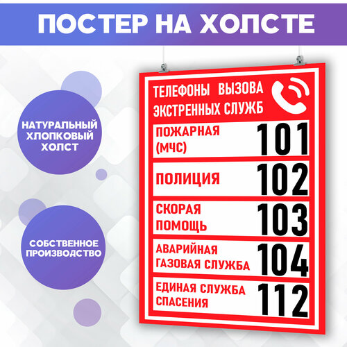 Постер Телефоны аварийных экстренных служб (14) 50х70 см