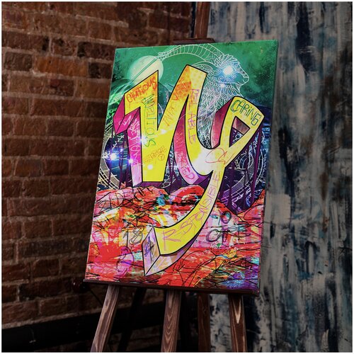 Картина на холсте "Суетиться" / Постер граффити для интерьера дома, офиса / Современное уличное искусство стрит арт