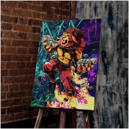 Картина мотивация на холсте "Лев с деньгами" для интерьера / Постеры для дома и офиса / Арт / Граффити / Животные