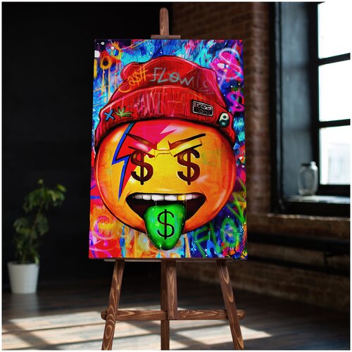 Картина мотивационная на холсте "Денежный смайл" для современного интерьера гостиной и офиса / Постеры граффити, абстракция, доллар