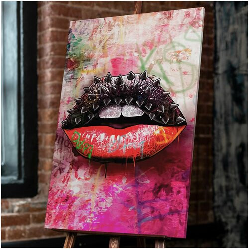 Картина на холсте "Шиповые губы" для интерьера гостиной, в офис / Современный постер на подрамнике, граффити